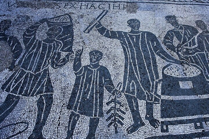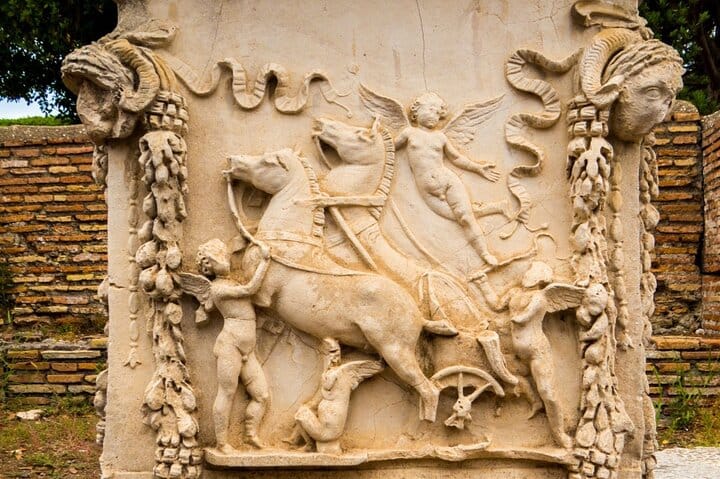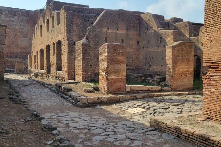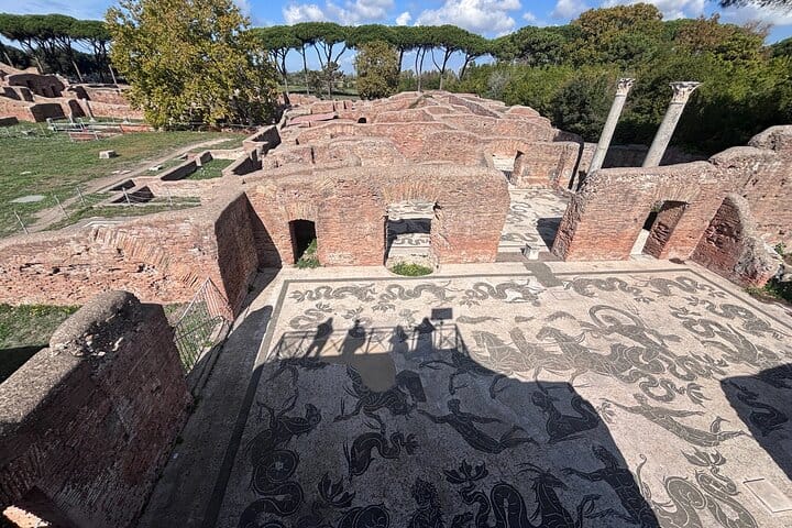 Inside the site, explore from Porta Romana toward the Forum, passing the Roman Theatre, the Baths of Neptune and the Square of the Corporations with its black-and-white mosaic “logos.” See the city’s everyday spaces too: insulae, mills, a thermopolium, and large horrea, plus villas, shops, and ancient streets.